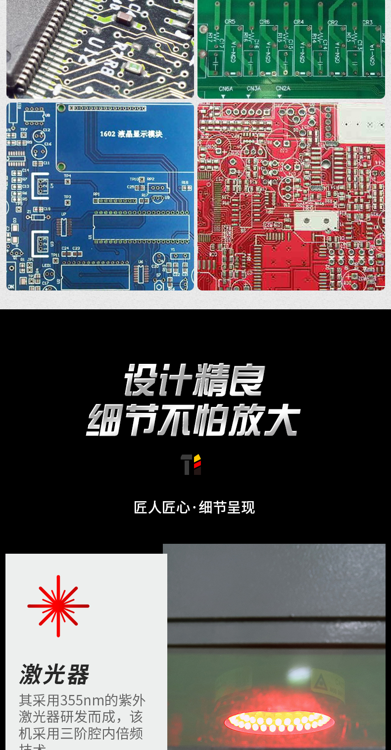 5.光束質量好,聚焦光斑小,可實現超精細打標;