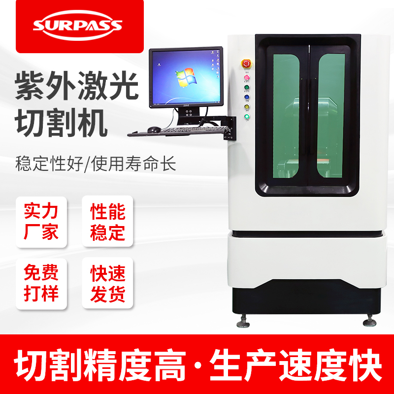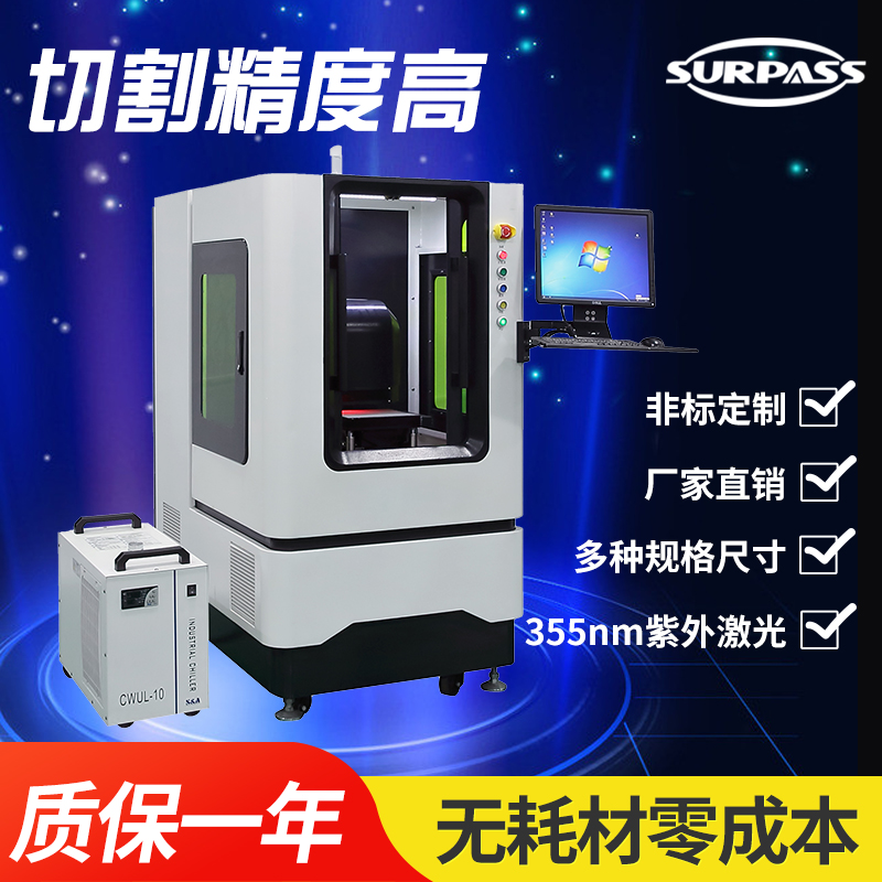 紫外激光切割機屬于激光切割機的系列產品,其采用355nm的紫外激光器研發而成,該機采用三階腔內倍頻技術,同紅外激光比較,355紫外光聚焦光斑極小,能在很大程度上降低材料的機械變形且加工熱影響小,因為主要用于超精細切割、雕刻,特別適合用于食品、醫藥包裝材料打標、打微孔、玻璃材料的高速劃分及對硅片晶圓進行復雜的圖形切割等應用領域。