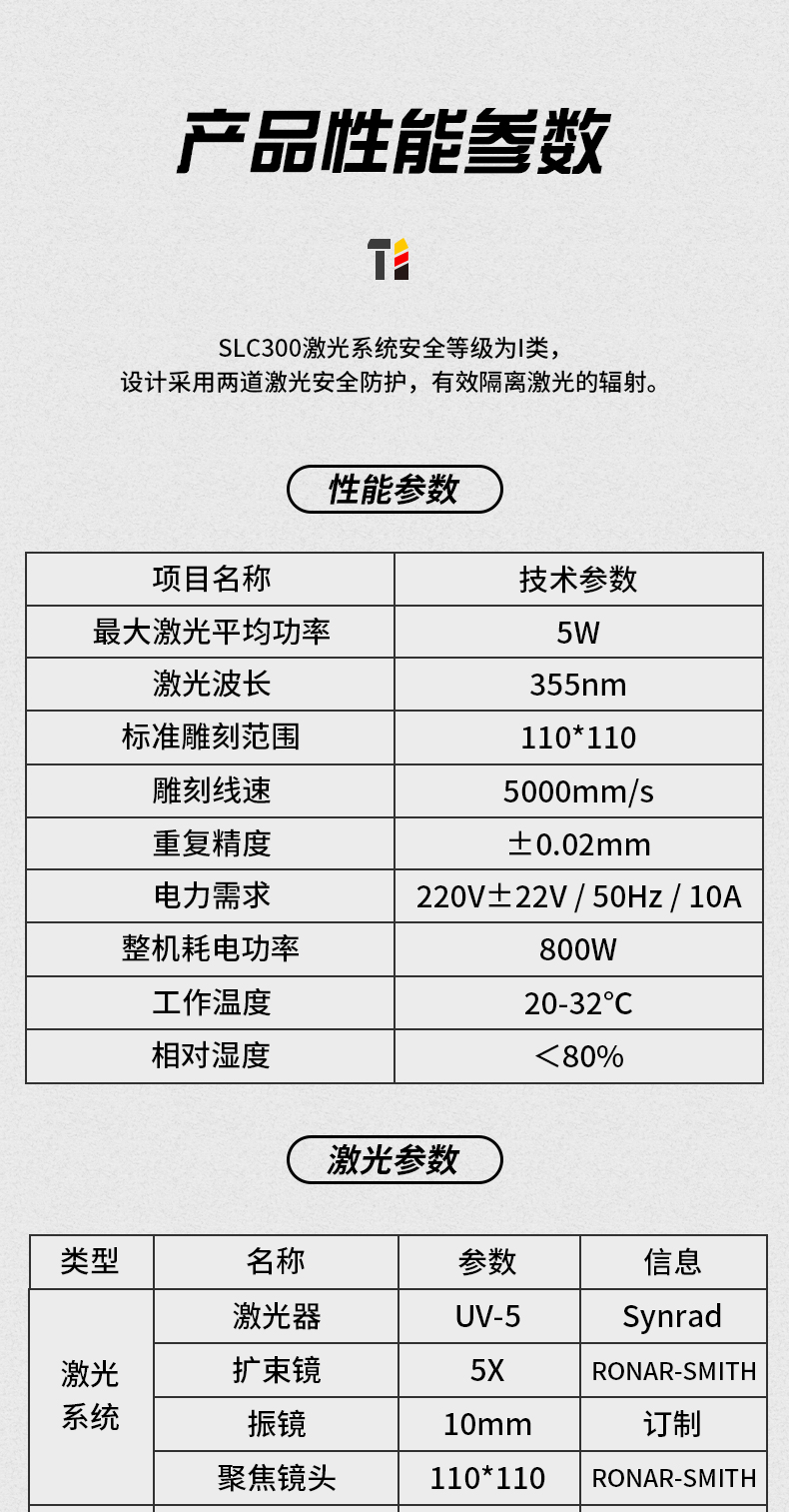 SLC300激光系統安全等級為I類,設計采用兩道激光安全防護,有效隔離激光的輻射。在激光加工過程中無需在進行特殊的防護措施。