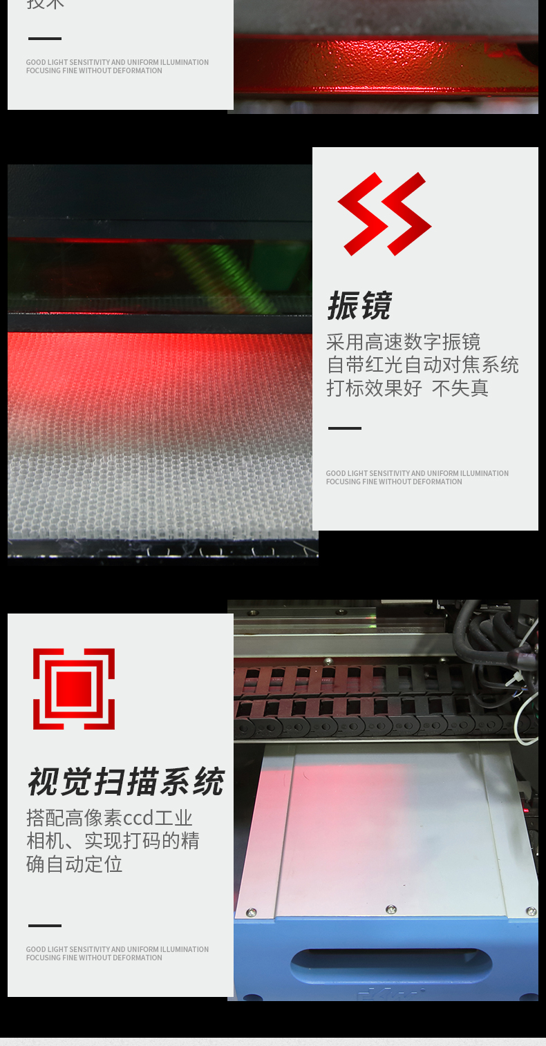 2.本設備采用了進口品牌的數字式高速掃描振鏡,體積小,速度快,穩定性極好,性能達到國際先進水平。